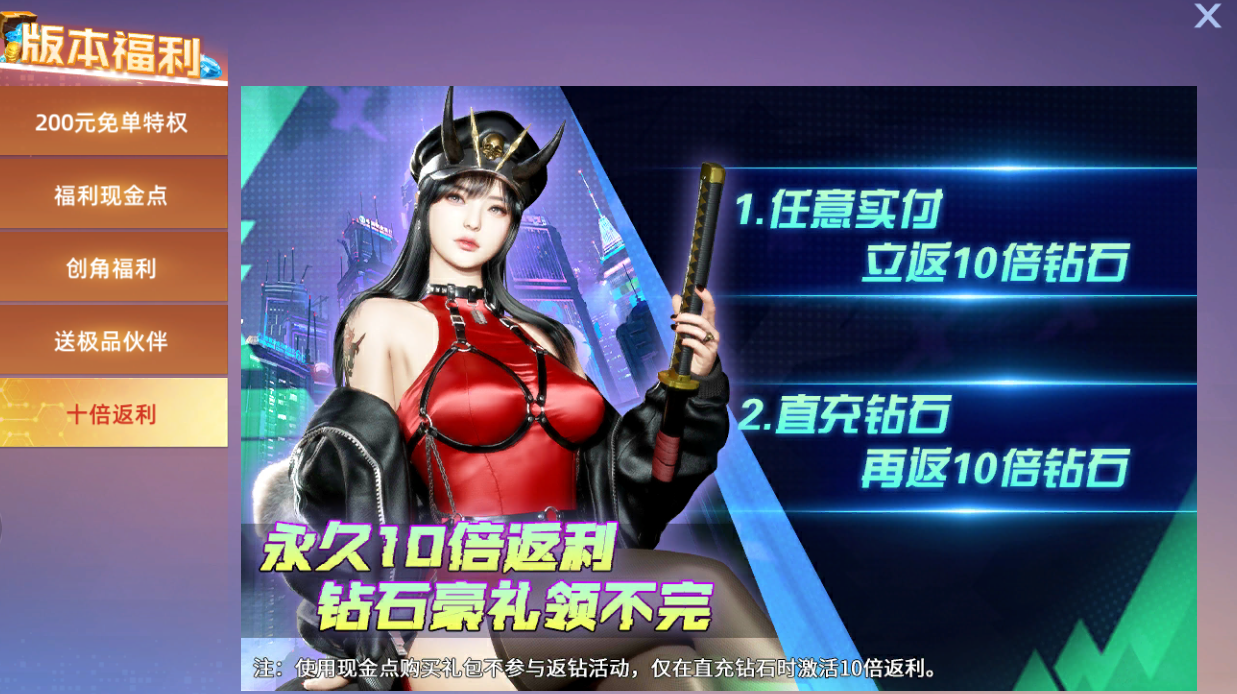 2、每日登陆拿500限时现金点(隔日会清空,请玩家及时使用,部分礼包、特权无法购买),每日任意实付还可以领取更多限时现金点